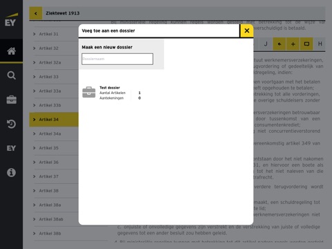 •de creatie van dossiers voor de opslag van snelkoppelingen naar geraadpleegde wetsartikelen;
