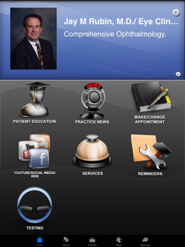 This application introduces you to the Eye Clinics of South Texas, and its owner Jay M. Rubin, M.D. Board Certified Ophthalmologist. It will give you directions to our clinics as well as phone numbers and emails to contact us. Also included will be several eye charts we use for monitoring various eye diseases including an Amsler grid for macular degeneration. If you have any questions please feel free to call our office toll free 1-877-826-2012 or visit our web site at www.JayRubinmd.com