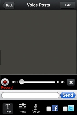 • Send voice posts to Facebook and voice Tweets to Twitter. What a powerful way to highlight and juice up your posts and tweets