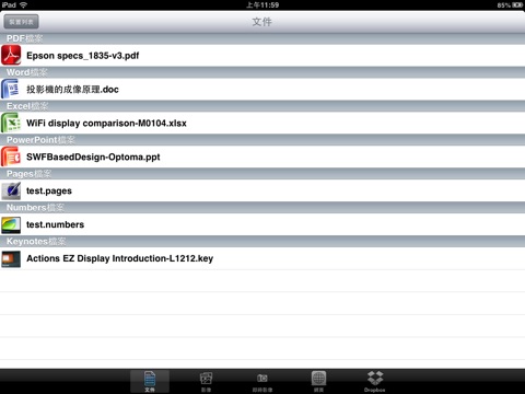 EZ Display is an easy-to-use app which enables your mobile devices to project the display to another device like projector or TV. You can remote control it through WiFi network, and display your photos/documents including PDF, MS-Office and iWorks. Furthermore, it can also display the web browser content and link to your dropbox storage.