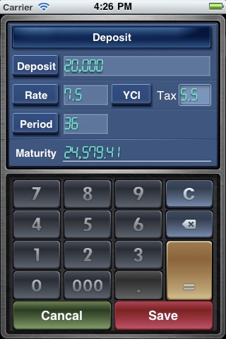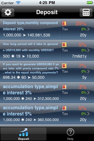 * calculation of deposit, savings deposit interest(simple interest, yearly compound interest, monthly compound interest) (including tax)