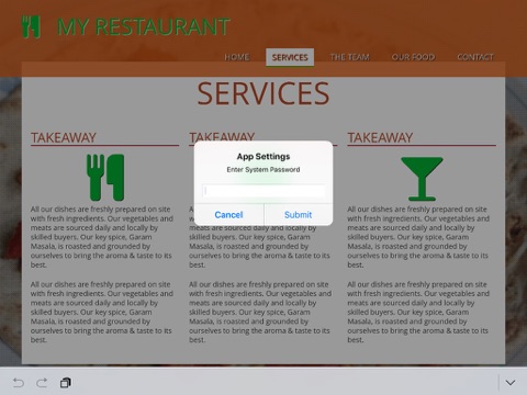 Setup is simple. The first time you launch the app you will be presented with the app settings window. Configure the Site URL for your web application and change the system password** to prevent unauthorized access to the settings screen.