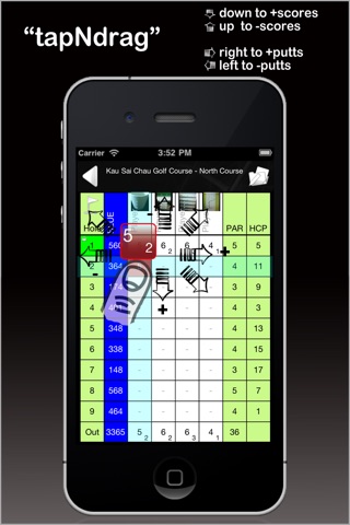 - record your number of strokes and putts without using the keyboard, all you need is just a single tab and drag - "tapNdrag" (our unique user interface design)