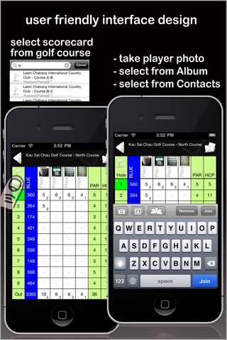 - use the iPhone/iPod Touch camera to get player photo onto the scorecard or select from Photo Album