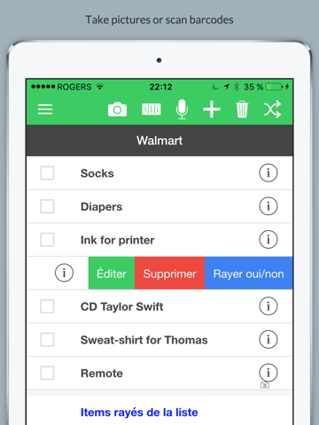 - enter shopping items (or any other) by typing, speaking (vocal) or scanning barcodes