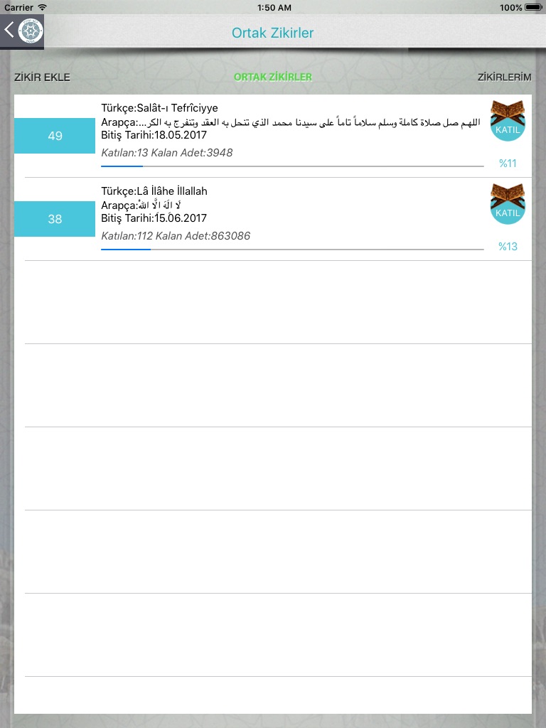 - Zikirler ve Hatimler (Yalnız veya Ortak)