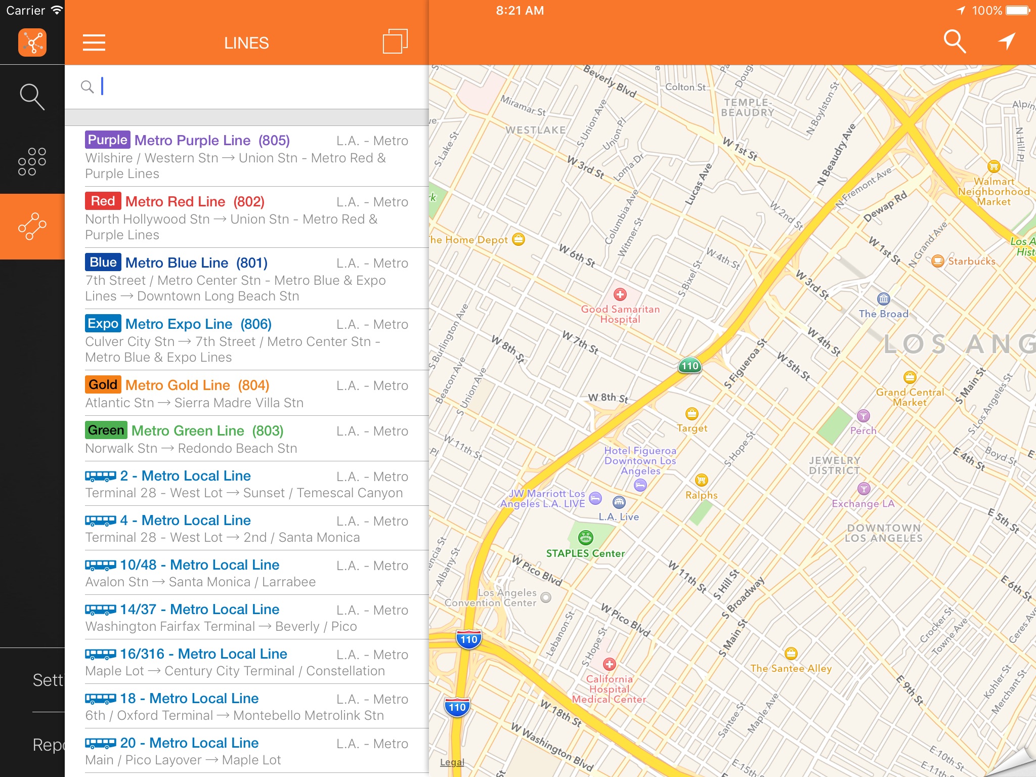 ezRide LA offers offline trip planning in the public transport system of Los Angeles METRO.