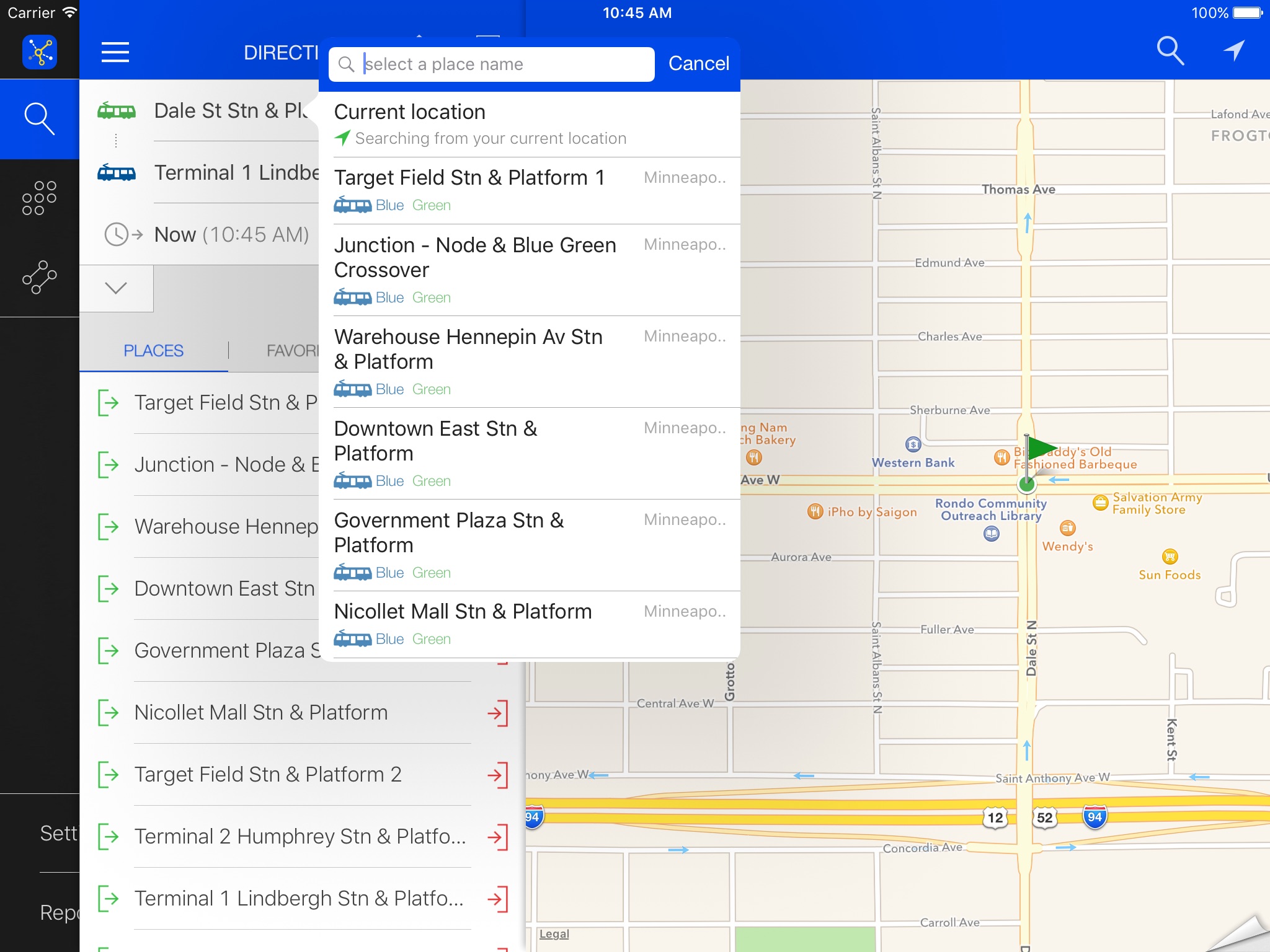 ezRide Minneapolis offers offline trip planning in the public transport system of Minneapolis / St. Paul METRO.