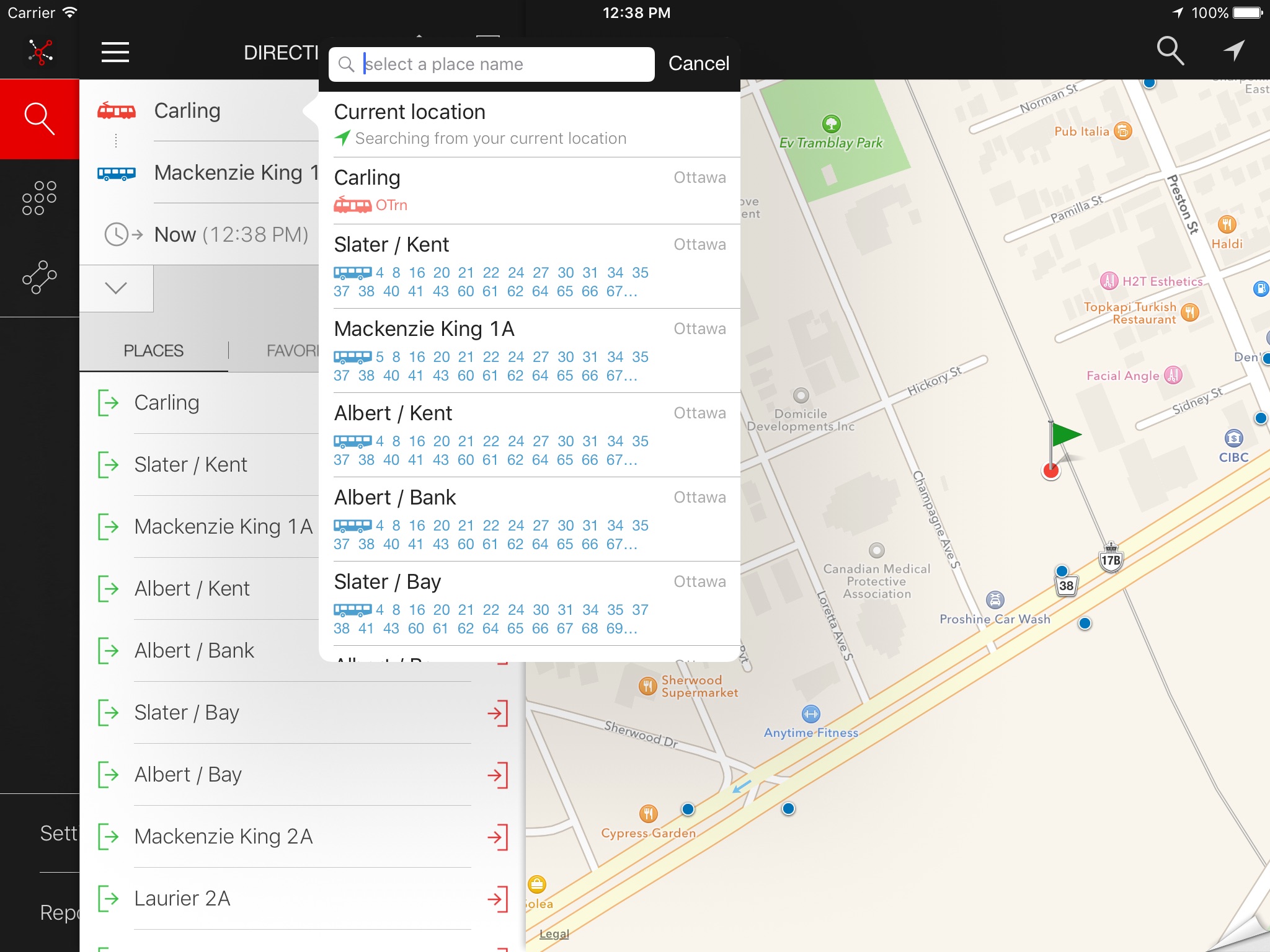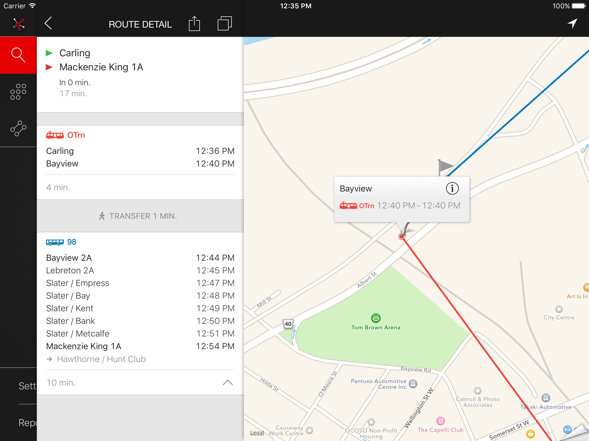 ezRide Ottawa offers offline trip planning in the public transport system of Ottawa OC Transpo.