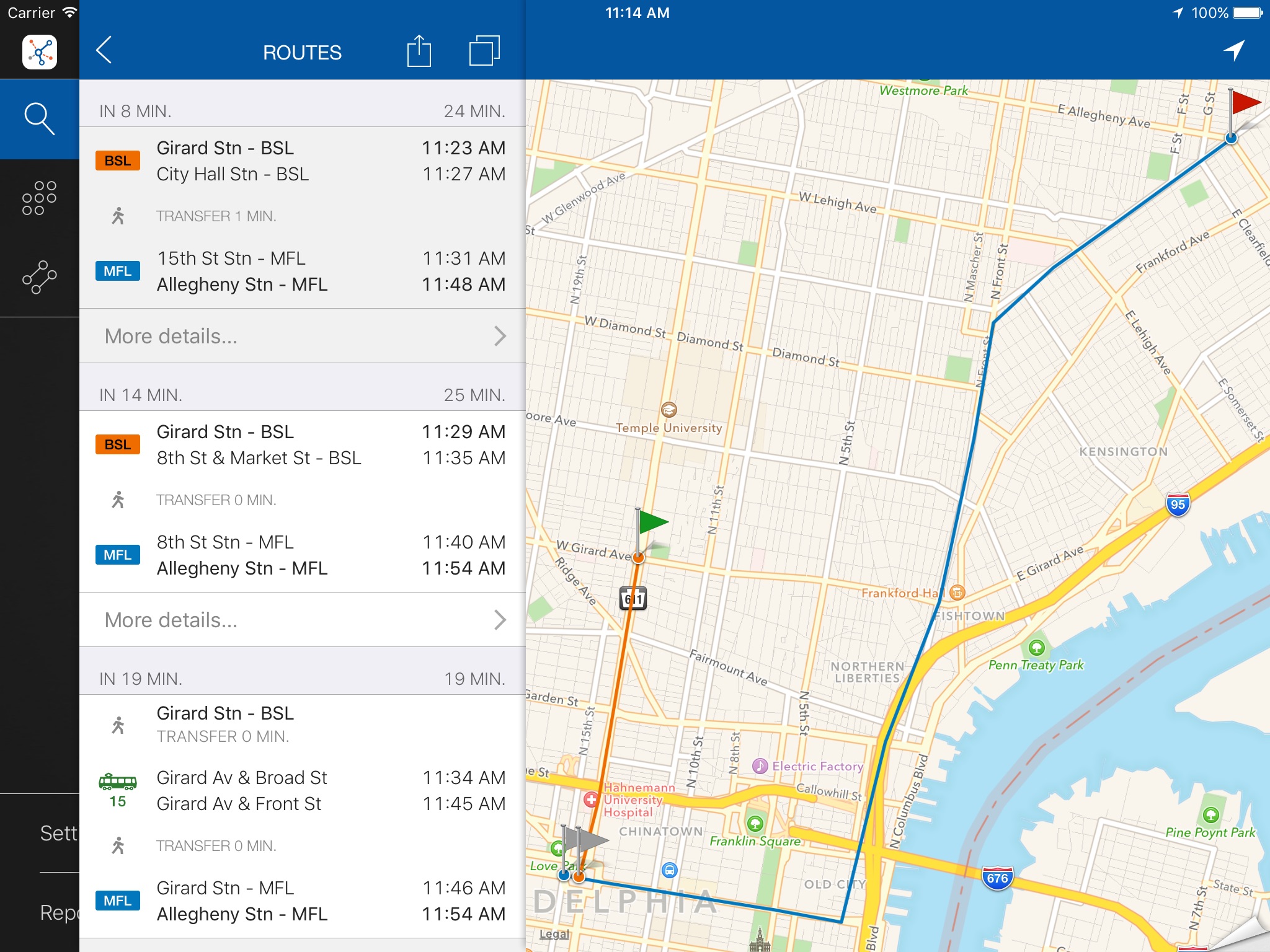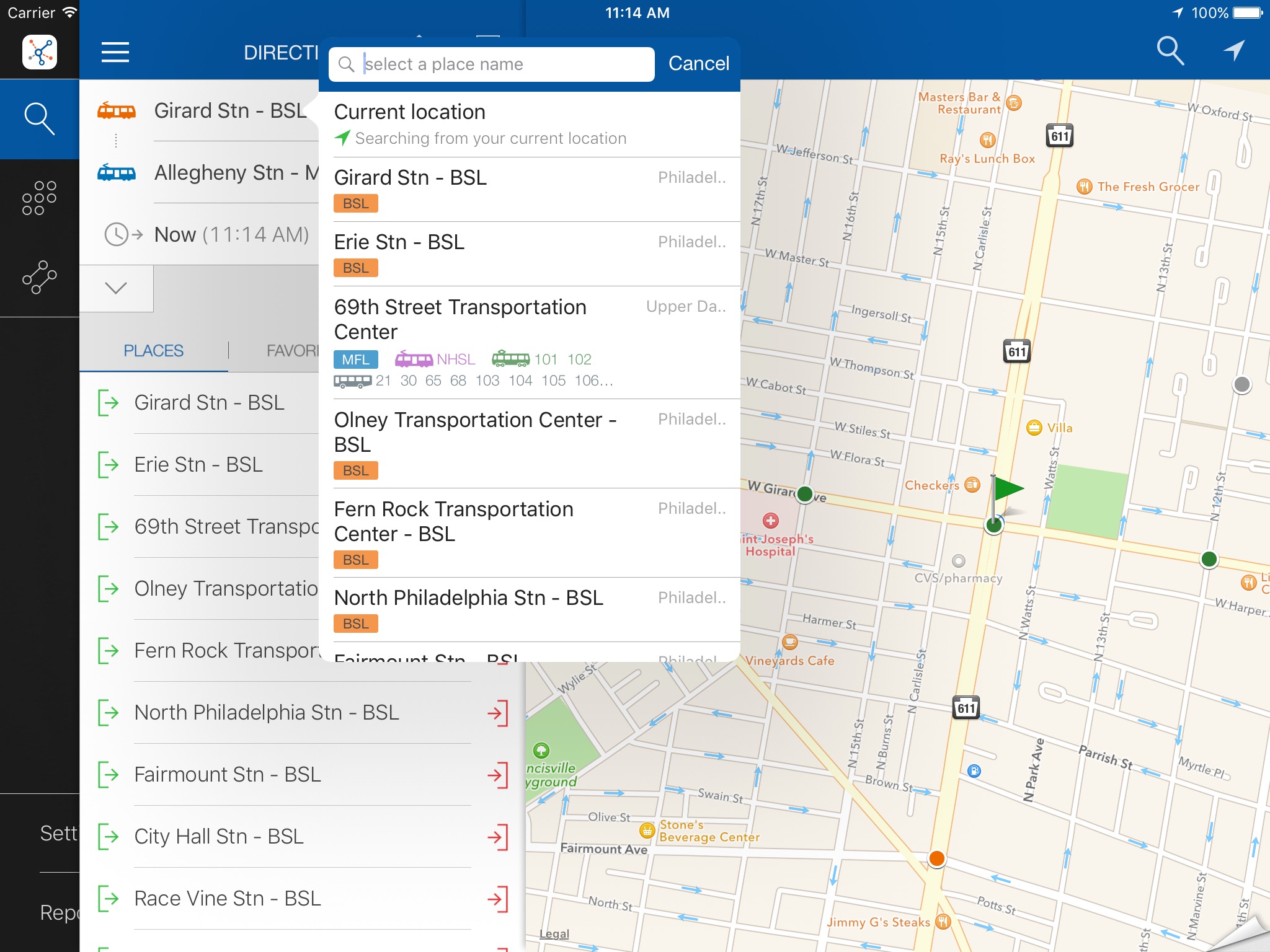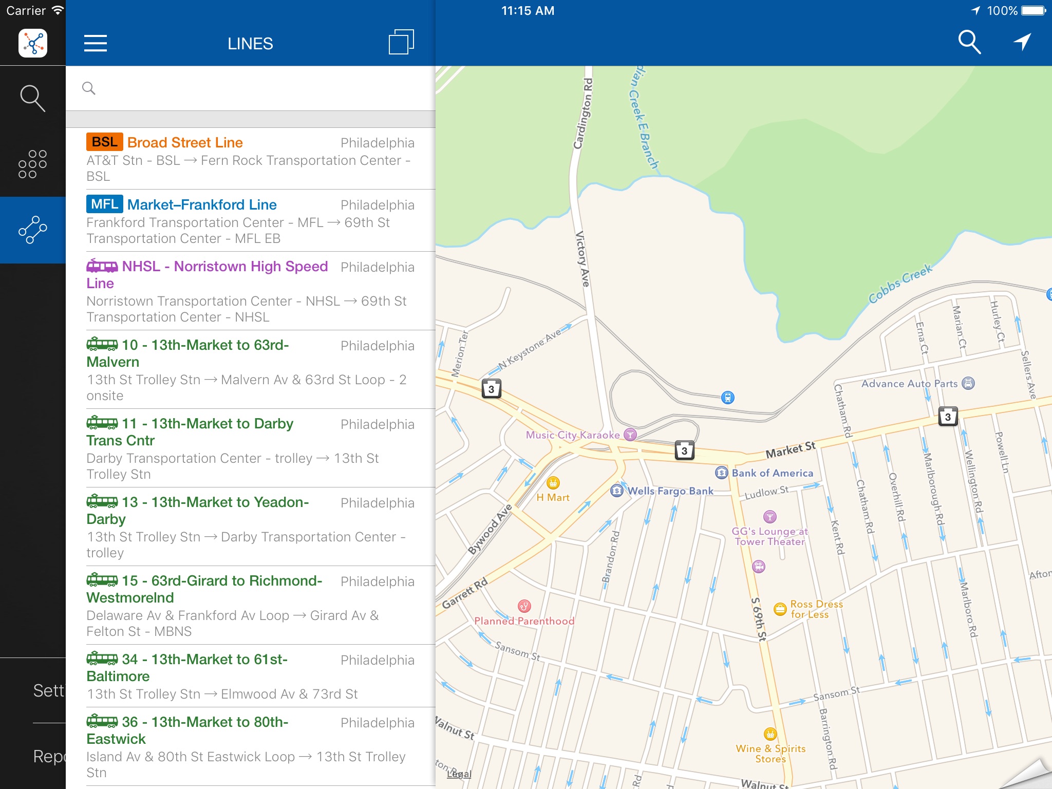 ezRide Philadelphia offers offline trip planning in the public transport system of Philadelphia SEPTA.