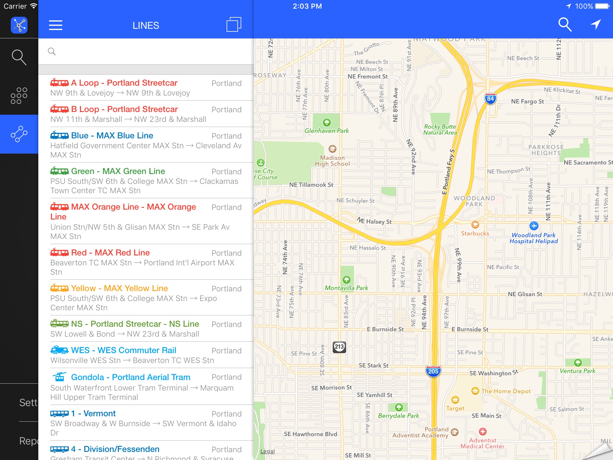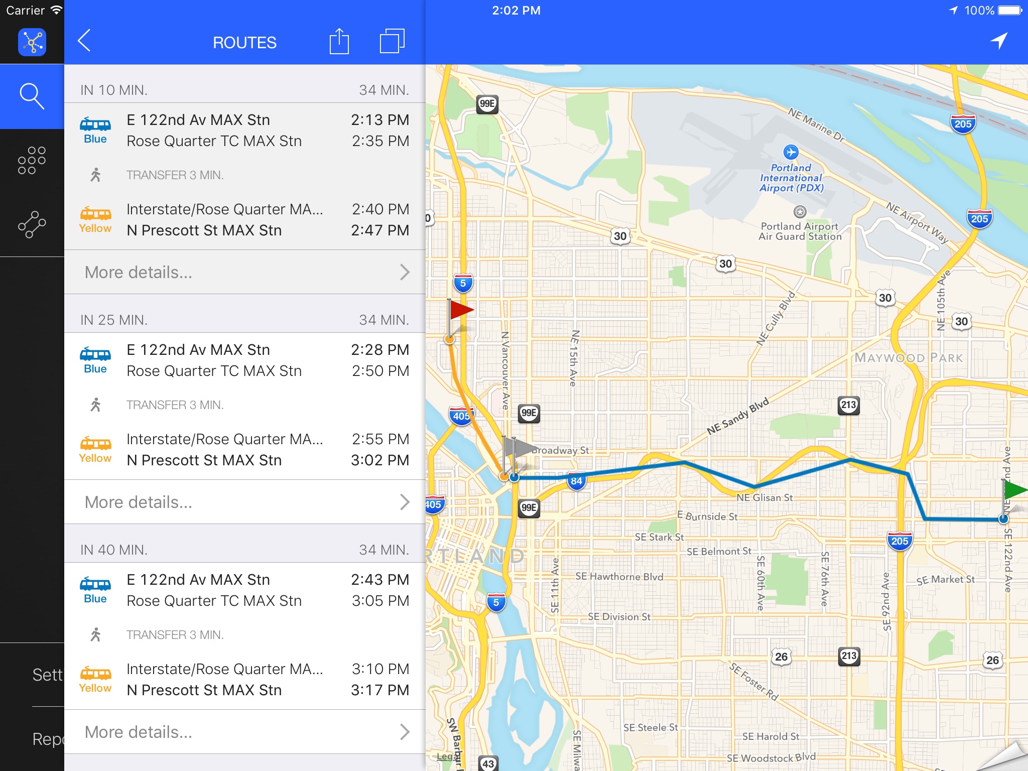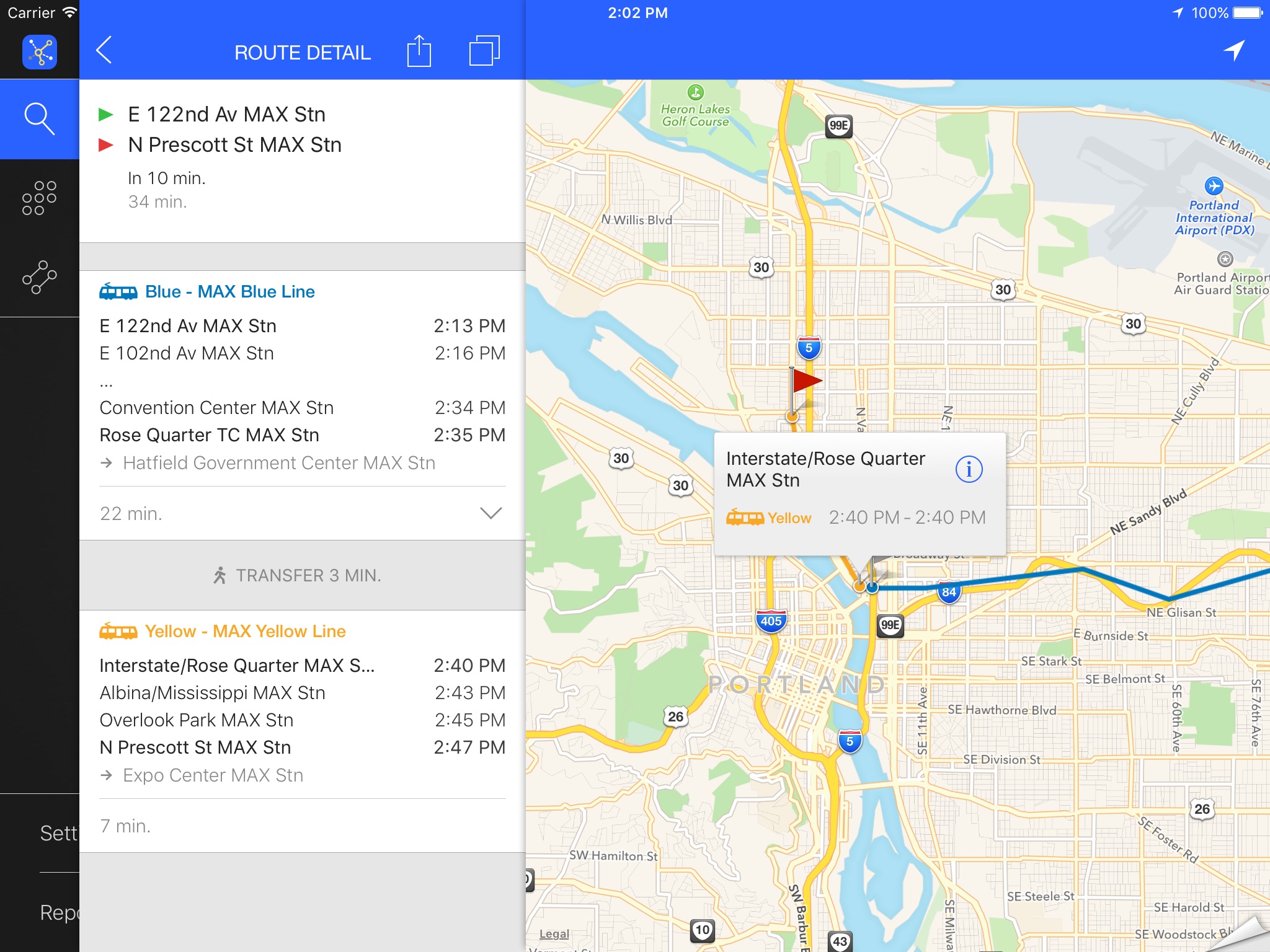 ezRide Portland offers offline trip planning in the public transport system of Portland TRIMET.