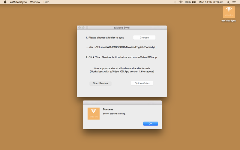 ezVideo Sync App is the Mac Companion for ezVideo iOS App https://itunes.apple.com/app/ezvideo/id378723561?mt=8