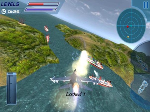 Take off towards the enemy upholding area with a limited ammo supply attached to your gunner jet fighter F16 plane. Use gun shells and bombs to locate and shoot anti-aircraft targeted missile to avoid the hit. Stop attack and strike back in the spirit of complete air naval action combat. Spot the missile launcher guns and destroy them before they hit other missile. Stick to the rule of locate and shoot in the air for your ultimate survival. Relay on your guts to trace out an anti-aircraft ship carrier. Sink down Larger ship carrier holding heavy weapons and assault gunner machines. Destruction is your ultimate goal that meets you to the victory!