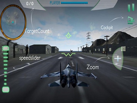 Control the speed of f18 plane by a throttle slider to adjust fuel intake, use gyroscopic pilot controls to manually adjust flight and strafe sideways. The onscreen radar will display enemy movements from all corners of the battlefield.