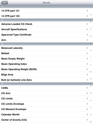 This app is a collection of Glossaries found in FAA publications for pilots. It includes terms and acronyms from seven FAA books including: Handbook of Aeronautical Knowledge, Airplane Flying Handbook, Instrument Flying Handbook, and Aviation Weather. It also includes the acronyms from the AIM, the complete Pilot/Controller Glossary, ATC Glossary, and definitions from the FARs.
