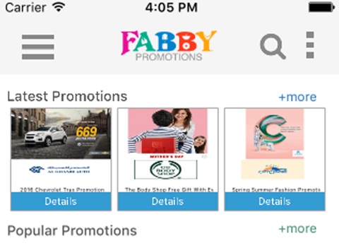 Launched in December 2012 as part of A4M Group, FabbyPromotions is a Promotion Aggregator APP featuring latest deals, offers, promotions, online deals and mall wide deals. Our aim is to make it convenient for you to explore and discover the latest deals in UAE so that you can take full advantage of it.