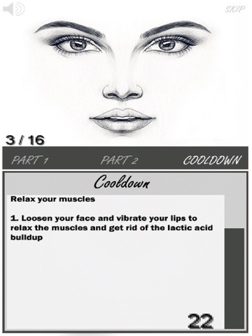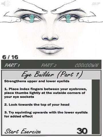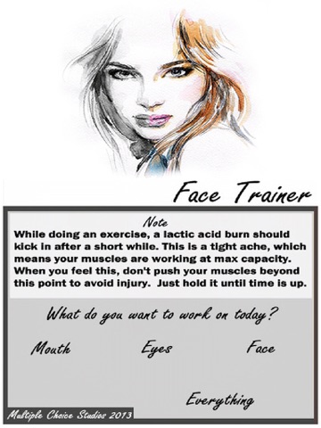 Face Trainer provides a dozen different timed exercises to provide for an easy-to-follow face training program.