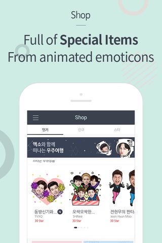 You may share your celebrity with other through SNSs like KakaoTalk, Line, Facebook and Twitter!