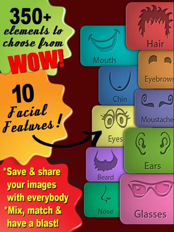 STEP 1: Tap on one of ten facial features to start (for example, start with hair or eyes):