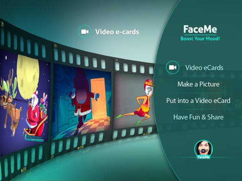 Insert your head into one of the FaceMe-videos and become a character evoking uproarious laughs! Lighten up your day or cheer up a grumpy friend with the hilarious FaceMe animated eCards!