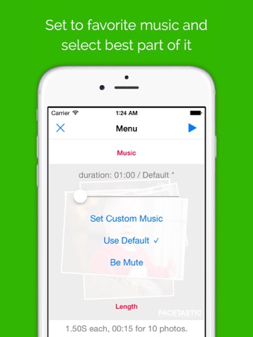 I had so much fun loading pics into this app. It was simple and did all the work for you. If you buy the upgrade, you can change the slide show speed, and add your own music!