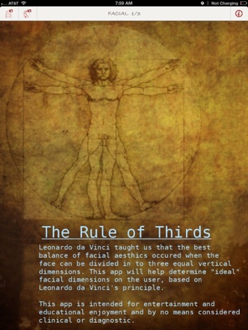 Is your face proportional? This application is based on the premise that the ideal facial balance occurs when the face can be divided in to 3 equal vertical dimensions as determined by Leonardo da Vinci.