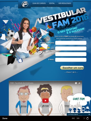 avisos, mensagens, atendimento online através de chat para vestibular.