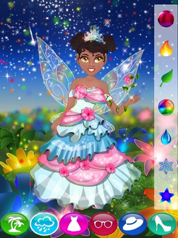 In this app you will find hundreds of dress up ideas! You can choose clothes, hats, collars, wings, glasses to make you fairy look exactly the way YOU want!