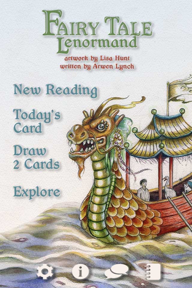 Explore a magical realm of peasants and princesses, dragons and daring deeds, in Fairy Tale Lenormand! With enchanting art by Lisa Hunt and a delightful guidebook by Arwen Lynch, Fairy Tale Lenormand weaves multicultural myths into the familiar structure of the Lenormand deck. These tales are drawn from Grimm’s Fairytales, The Arabian Nights, Native American legends, and Asian folklore. Each well-chosen myth provides a metaphor illuminating that card’s message, and anchoring the Lenormand images in the universal world of fairy tales.