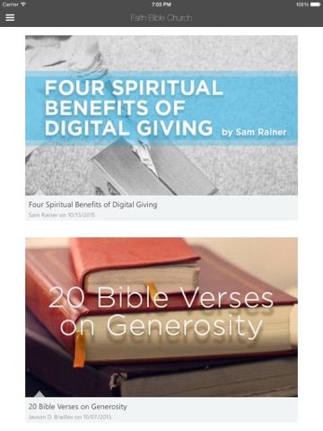Connect and engage with our community through the Faith Bible Church - DeSoto app!