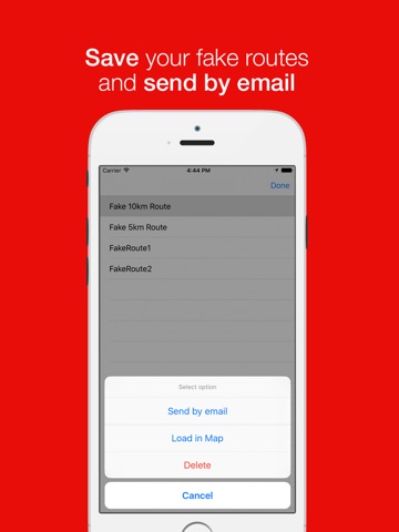 Easily generate GPX files with routes. Long press the map to make fake location points. Send to email. Save unlimited routes.