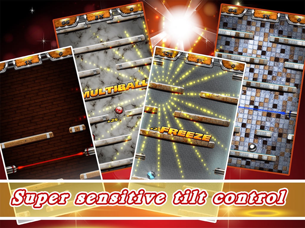 Tilt the ball to control it and try to avoid getting destroyed at the top. You can collect several power-ups on your way down, that help go deeper and live longer. To add more strength to your ball just visit the in-game store that allows you to buy superpowers. You need coins for the in-game store. You can get coins from playing and getting high-scores, by sharing this app with your friends or with in-app purchase.