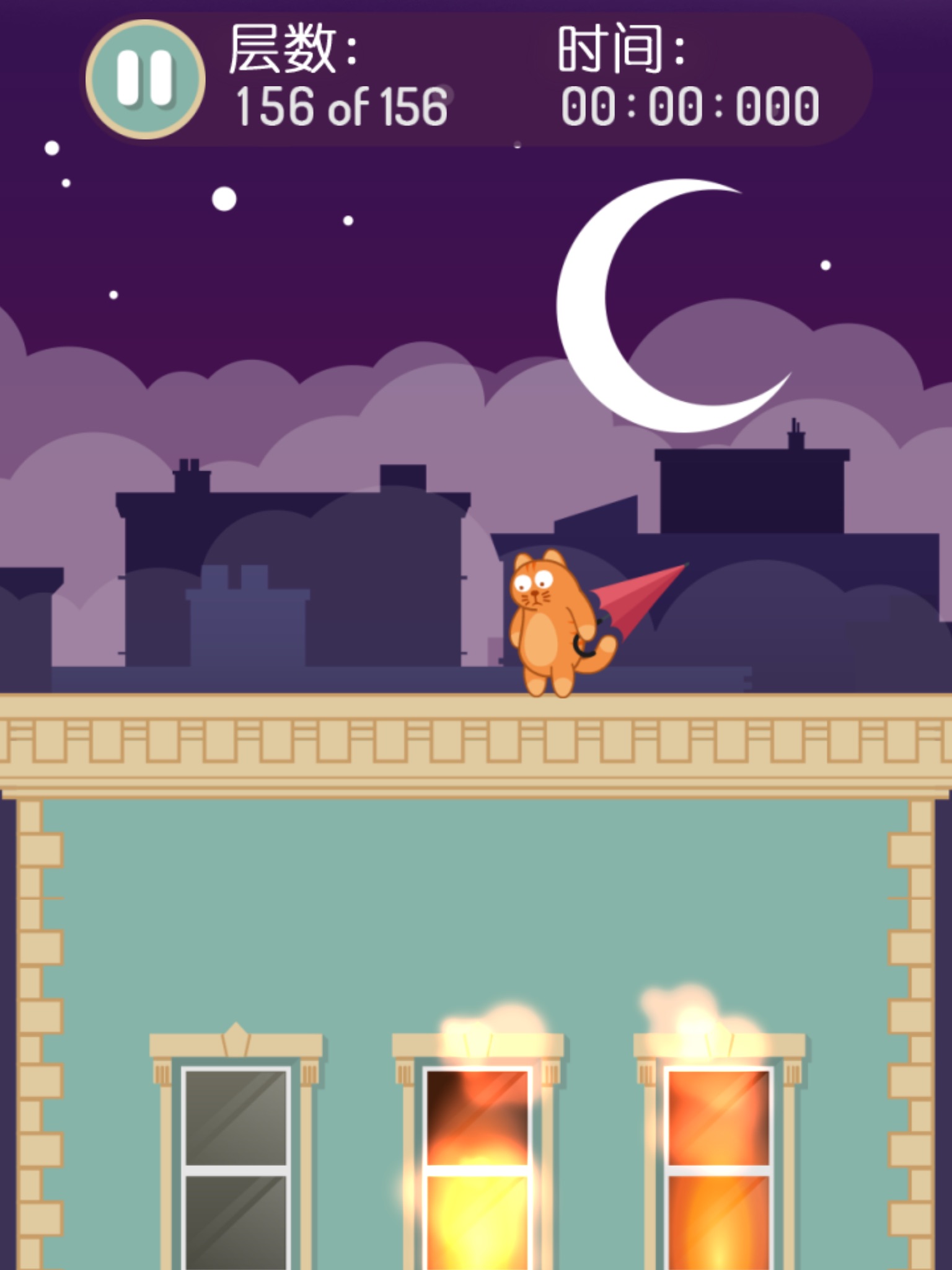 The cats home is in fire,help the cat falling to safety by taking advantage of an umbrella.