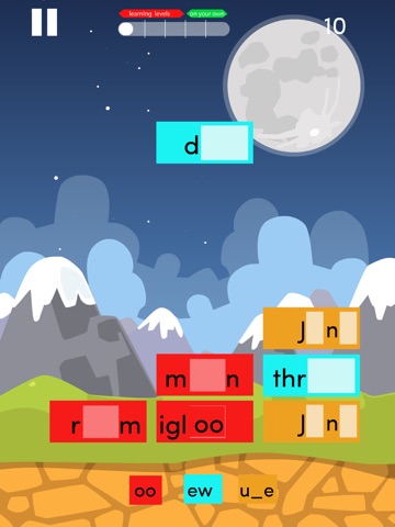 Bricks fall from the top of the screen and the player uses the colour-coded sound squares to complete the word. The player hears each word as it falls, or alternatively they can press a brick to hear the word.
