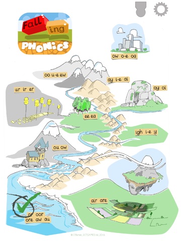 Falling Phonics is an App designed by a teacher of 15 years experience. It is aimed at Key Stage 2 children, 7 years and older. The player travels through an enchanted land collecting pieces of an amulet. The purpose of the game is to teach phonics/spelling through spelling patterns. Each game teaches one spelling pattern, e.g. ‘ur’, ‘ir’ and ‘er’.
