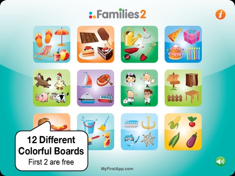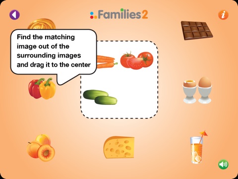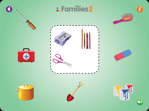 HOW TO PLAY: Each board displays a family of 3 images at the center, and seven surrounding images. The goal of the game is to complete a family by dragging the right member out of the surrounding images to the center.