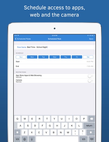 Schedule time to turn off 3rd party apps, stop web browsing, block the camera and video chat so they can go enjoy other activities