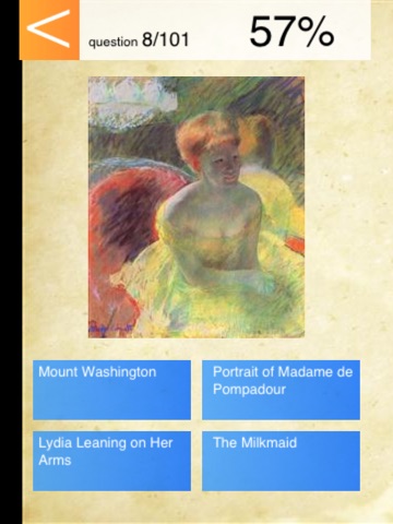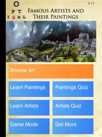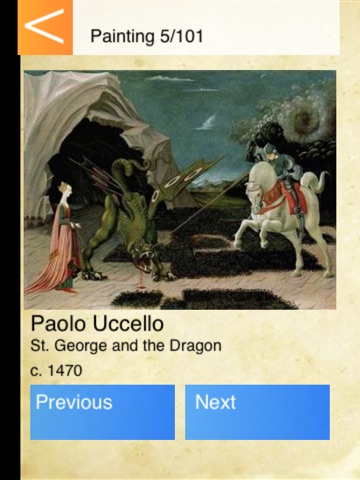 Our app features over 100 works of art from over 100 artists and has 5 modes of learning about each piece. You can learn by artist, by painting or take a quiz about each. You can also try out game mode which randomly asks artists and painting names and scores you on how quick you answer.