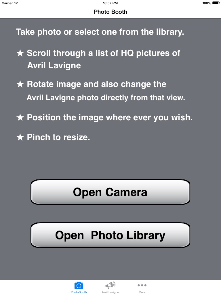 The ultimate Avril Lavigne Application!! Step inside and choose from various images of Avril to make them your own! Trick your family and friends with this awesome app. Now you can tell everyone youve actually met Avril Lavigne!