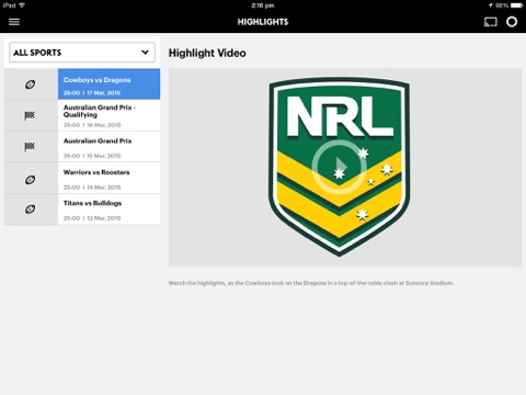 Sky Sport Now gives you streaming access to unrivalled sport content, including All Blacks, NRL, Super Rugby, ICC Events, Formula 1®, Premier League, A-League, State of Origin, ANZ Premiership & Silver Ferns netball, Supercars Championship, IPL, NBA, PGA Tour, LPGA, and so much more.