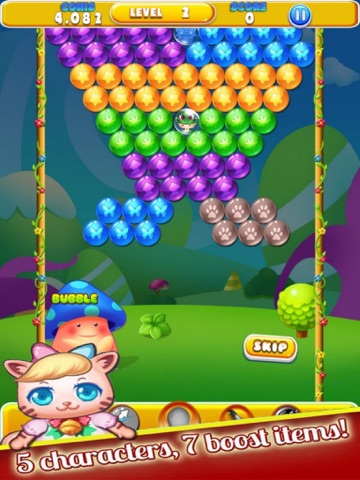 1. Launch the bubbles, eliminate the bubbles when connect three or more in the same color. The more bubbles connecting, the higher scores getting.