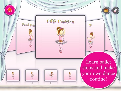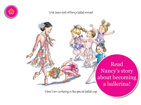 I dont know what my daughter likes better -- creating a dance routine for Nancy or dancing along with her in video! What a great use of the camera -- I can record video of my daughter dancing with Nancy anywhere. Seeing Nancy dance and pronounce the ballet steps is a nice touch. We own the other 2 Fancy Nancy apps but I can already tell this one is going to be a favorite in our house! Super cute.