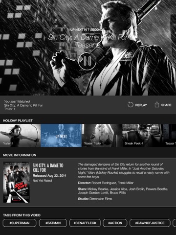 • Scroll through trailers, clips & original videos – all optimized for iPad’s retina display