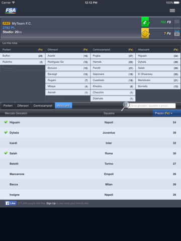 Sei appassionato di calcio? Segui la Serie A? Entra in Fanta Serie A, crea la tua squadra acquistando i tuoi calciatori preferiti e partecipa al campionato più bello di sempre, sfidando le squadre dei tuoi amici e di giocatori provenienti da tutto il mondo!