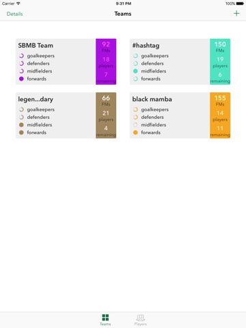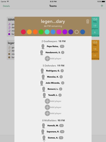 - Teams managing (allows you to add your team and your opponents ones and select players for each)