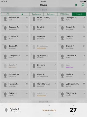 - Players bids (allows you to easily select the price for a player and to select the relative team)
