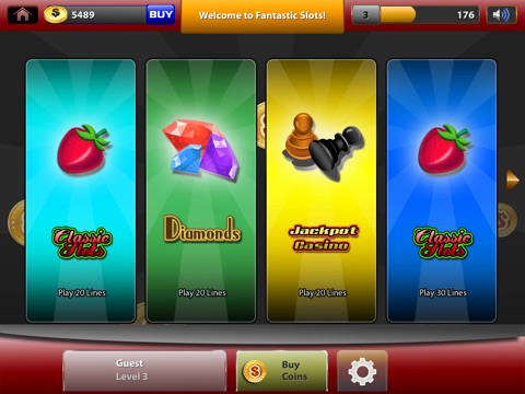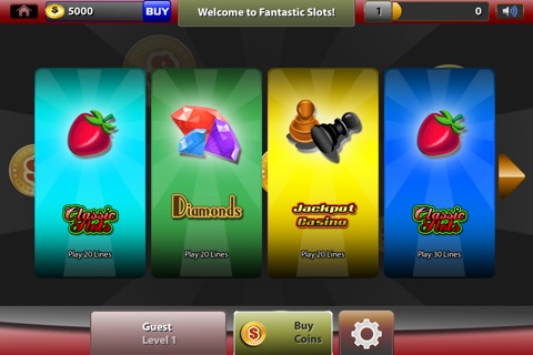 Fantastic Slots is a fun new slot machine game featuring slot machines in a casino featuring fruits, gems, coins, diamonds and more! Win lots of coins and gold in this extremely simple and addictive game.