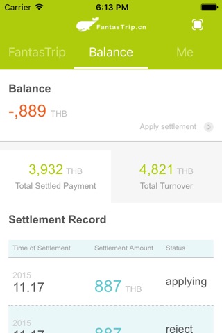 Fantastrip Partner is an inner APP custom-developed for all the partners of Fantastrip. Partners of Fantastrip can log in the mobile client to verify and administrate their accounts and balance.