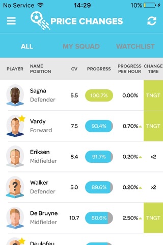 • Build Your Squad Value: Use our ‘Price Change Predictor’ with push notifications to alert you when players are about to rise or fall in value.