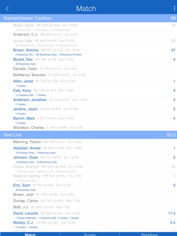 Get live fantasy scores for your team and league, detailed player stats, league standings, and even set your starting lineup.